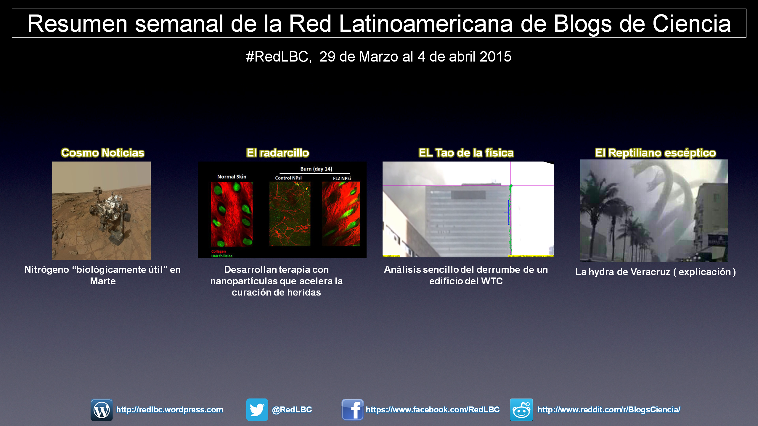 - Cosmo Noticias: Marte es un planeta que aun nos guarda mucha información , pero poco a poco vamos conociendo mas de su pasado, como el nuevo descubrimiento del átomos de hidrógeno que pudieran ser utilizadas por formas de vida, aunque originadas por fenómenos como impacto de meteorito-> Nitrógeno “biológicamente útil” en Marte