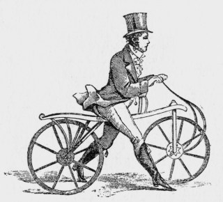 La tracción se producía mediante el empuje producido por los pies contra el suelo, como en una especie de andador. Pese a su precariedad, un aspecto crucial de la bicicleta ya está presente en este primer vehículo: la persona no debe cargar con su propio peso. De este modo el viaje requiere menos energía que caminar. Tal vez esta sea la esencia misma de la bicicleta.