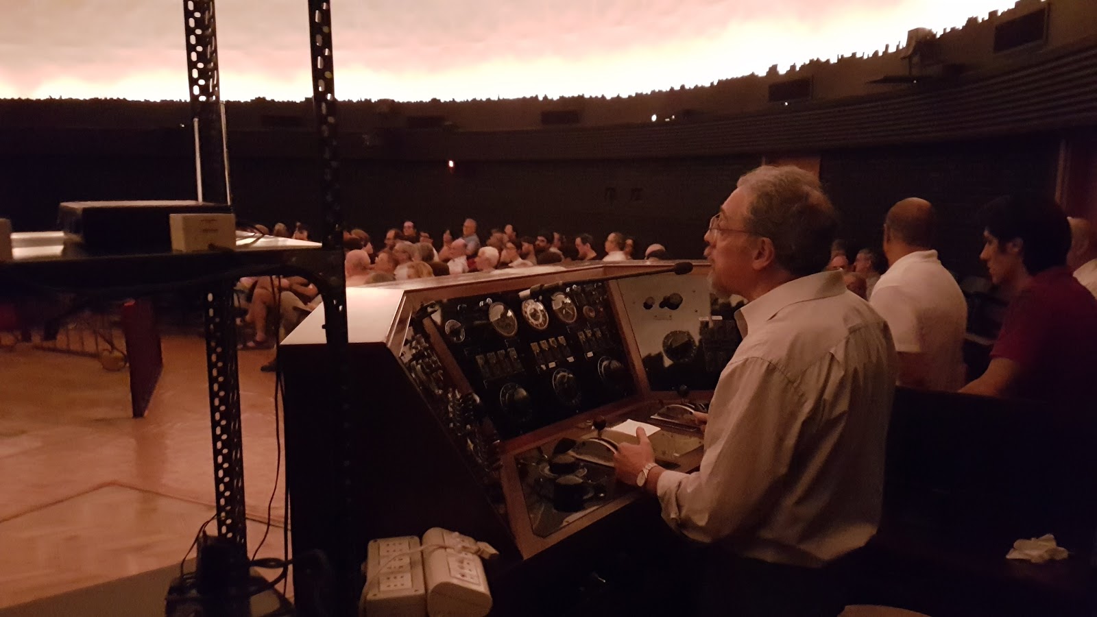 Uno de los protagonistas de la noche fue el instrumento planetario Spitz modelo B (del que solo se fabricaron tres), que ha sido el corazón del Planetario Municipal desde que fuera inaugurado el 11 de febrero de 1955. Pese a la nostalgia, sus días no han llegado a su fin. El Spitz ya no será el único protagonista de la escena, pero seguirá dominando el centro de la sala, un poco más abajo, claro, como para no interferir con la proyección digital a domo completo, pero alguna que otra vez volverá a brillar para iluminar nuevamente de estrellas la cúpula del Planetario.