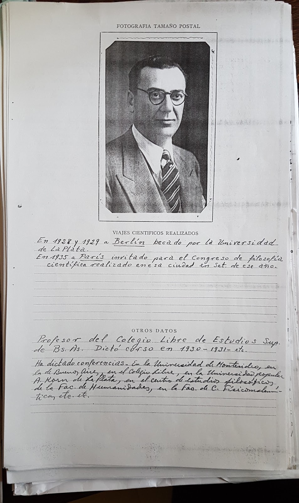 El primer físico uruguayo, Enrique Loedel Palumbo, nació en Montevideo el 29 de junio de 1901. Cursó primaria y secundaria en su ciudad natal y luego se trasladó a la República Argentina para estudiar física en la Universidad Nacional de La Plata (UNLP), donde se doctoró en 1925. Hasta el día de hoy su archivo personal se conserva en el Departamento de Física de la Facultad de Ciencias Exactas de la UNLP. De entre los muchos libros y documentos personales allí guardados, se destaca un currículum, que aquí comparto y del cual transcribo la muy breve reseña auto-biográfica firmada por Loedel el 25 de junio de 1940, pocos días antes de cumplir 40 años y casi una década antes de escribir sus dos libros más conocidos, donde se reflejan sus principales intereses académicos: Enseñanza de la Física (1949) y Física Relativista (1955).