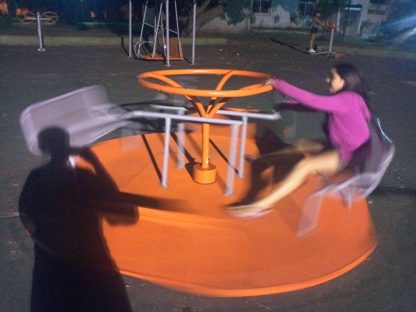Figura 1. Un teléfono inteligente ubicado en el piso de un carrusel es empleado para medir de forma simultánea la velocidad angular y la aceleración centrípeta.