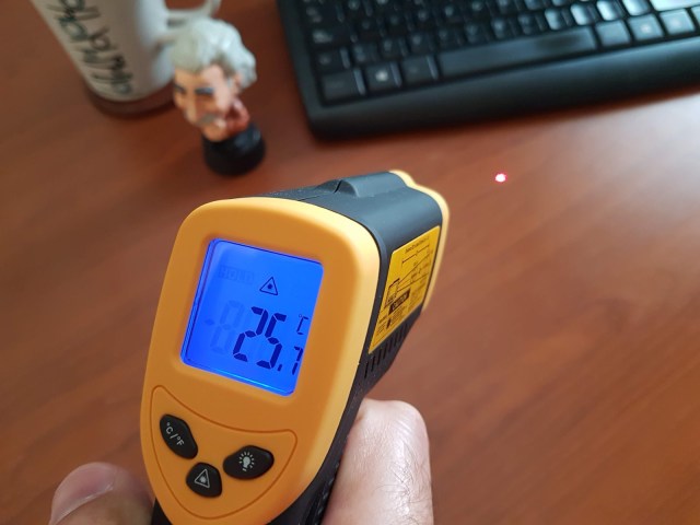 Con ayuda de un termómetro infrarrojo (explicación más abajo) resulta interesante descubrir las diferentes temperaturas que se alcanzan en diversas condiciones. Por ejemplo, la gran diferencia entre la temperatura del suelo y la temperatura del techo, que no solo se explica por el hecho de que el aire caliente sube, sino más importante aún, por la radiación solar incidente sobre el techo y por las características de la aislación térmica del mismo.