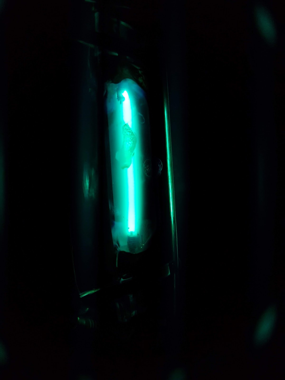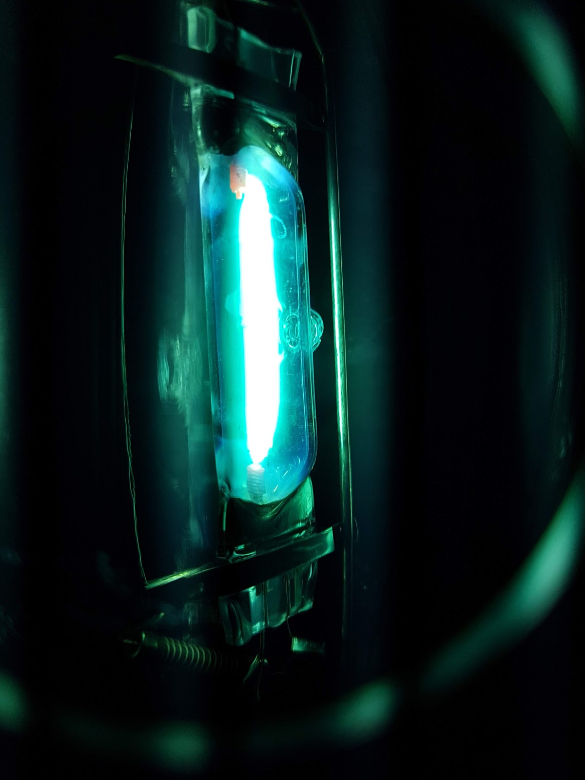 La ionización del gas en el interior de un tubo requiere que se establezca una corriente por su interior. Hasta que esta corriente se establece, breves destellos de arranque se pueden observar como pequeños picos al comienzo de la gráfica de luminancia.