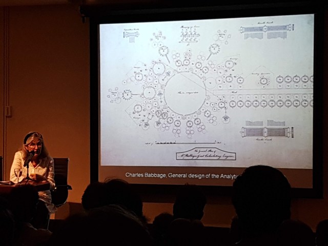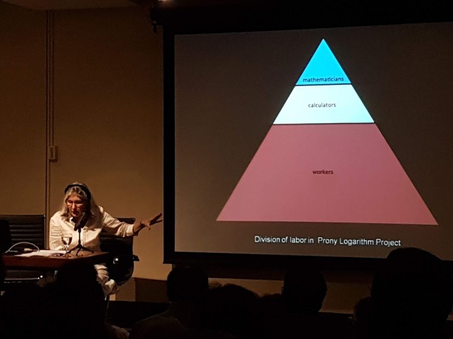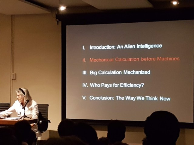 Ante un auditorio desbordante, con gente sentada hasta en el piso, Daston ofreció una elocuente conferencia sobre la historia del cálculo y la inteligencia humana: «Big Calculation and the History of Intelligence.»