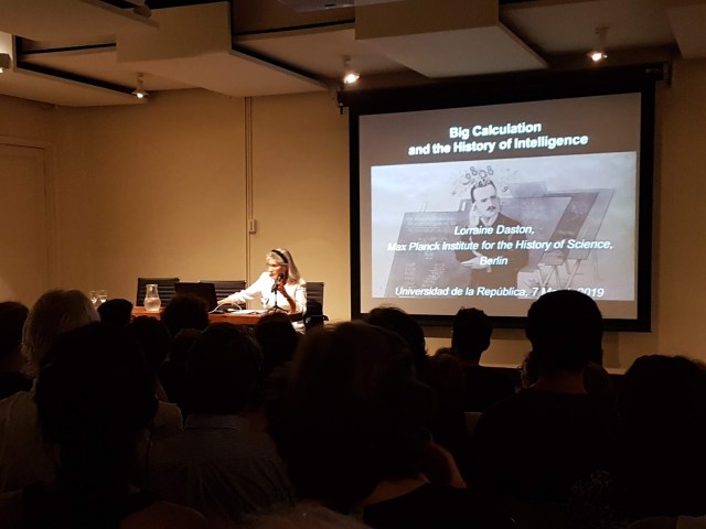 Esta noche, en el Museo Nacional de Artes Visuales, tuvimos la gran oportunidad de conocer a la prestigiosa historiadora de la ciencia, Lorraine Daston, doctorada en Harvard en 1979 y desde hace 24 años directora del Department II, del Max Planck Institute for The History of Science. La actividad estuvo organizada por el Archivo General de la Universidad (AGU), con apoyo del Goethe Institut-Uruguay y de la Academia Nacional de Ciencias del Uruguay.