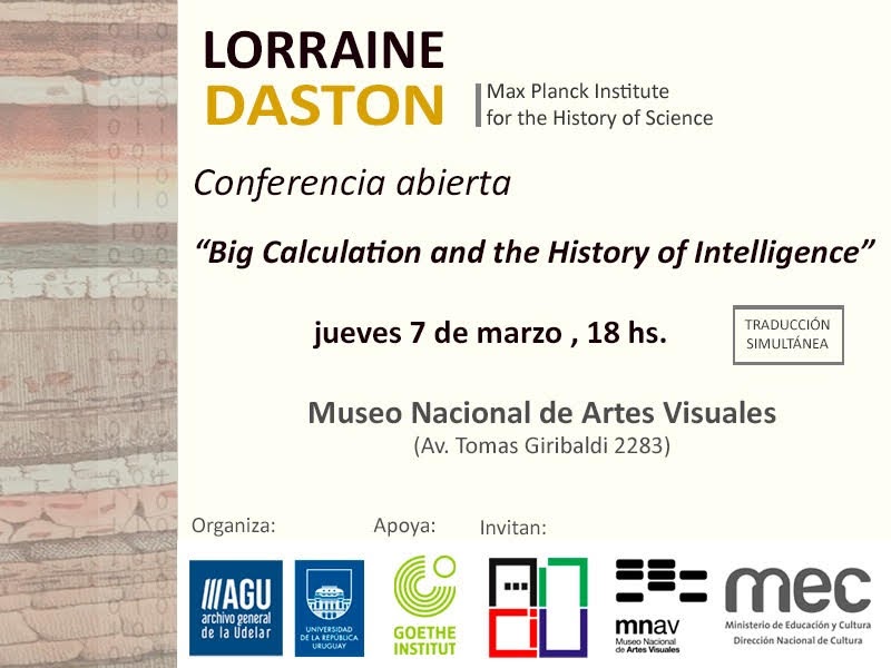 Esta noche, en el Museo Nacional de Artes Visuales, tuvimos la gran oportunidad de conocer a la prestigiosa historiadora de la ciencia, Lorraine Daston, doctorada en Harvard en 1979 y desde hace 24 años directora del Department II, del Max Planck Institute for The History of Science. La actividad estuvo organizada por el Archivo General de la Universidad (AGU), con apoyo del Goethe Institut-Uruguay y de la Academia Nacional de Ciencias del Uruguay.