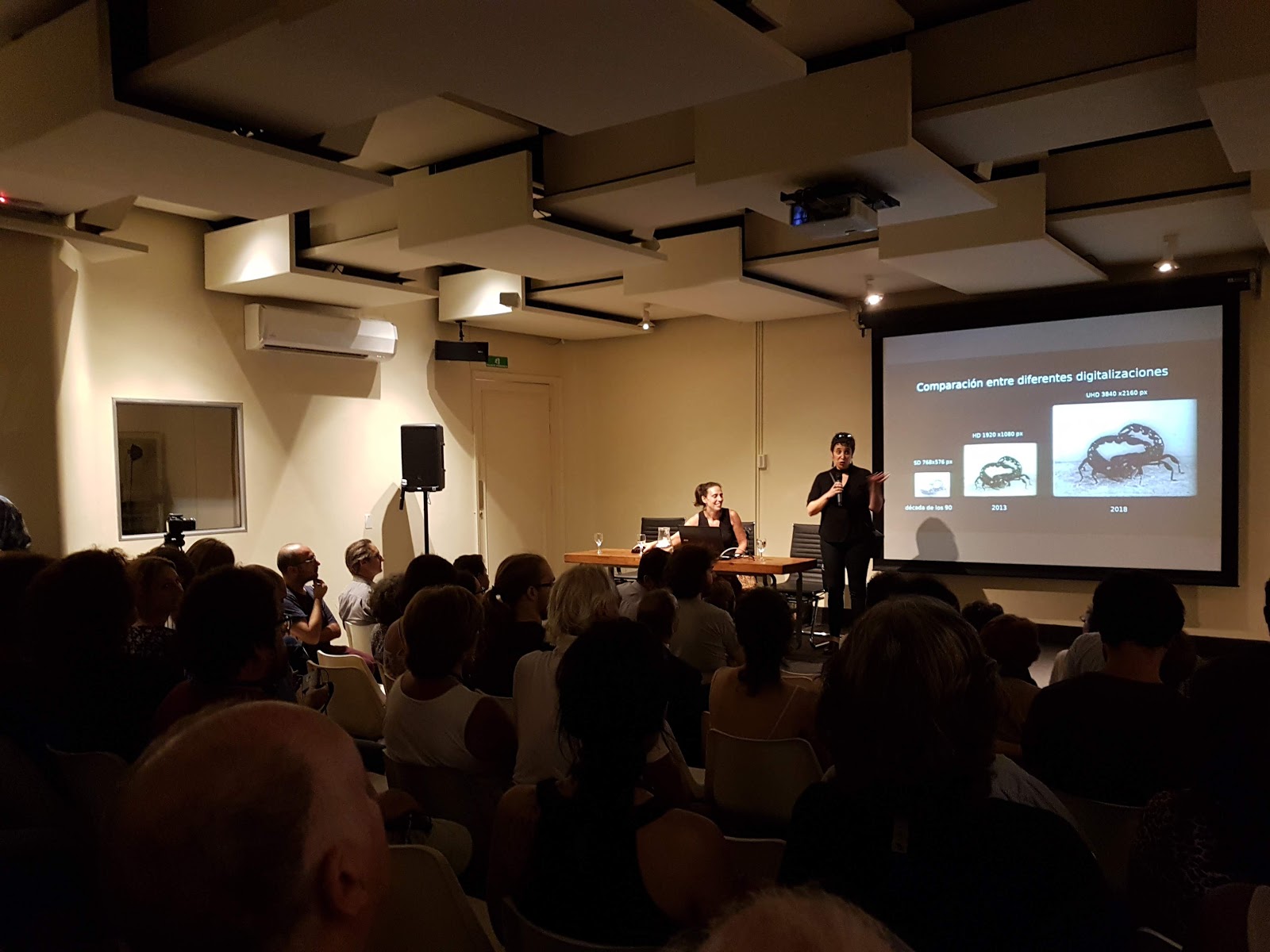 La previa a la conferencia de Daston, estuvo a cargo de las organizadoras, Vania Markarian e Isabel Wschebor, quienes expusieron brevemente las tareas de preservación de archivos a la que se dedica el AGU, a través del Laboratorio de Preservación Audiovisual, en particular la conservación y digitalización de archivos científicos. Con tal motivo proyectaron algunas de las películas rescatadas del antiguo Instituto de Cinematografía de la Udelar (ICUR).