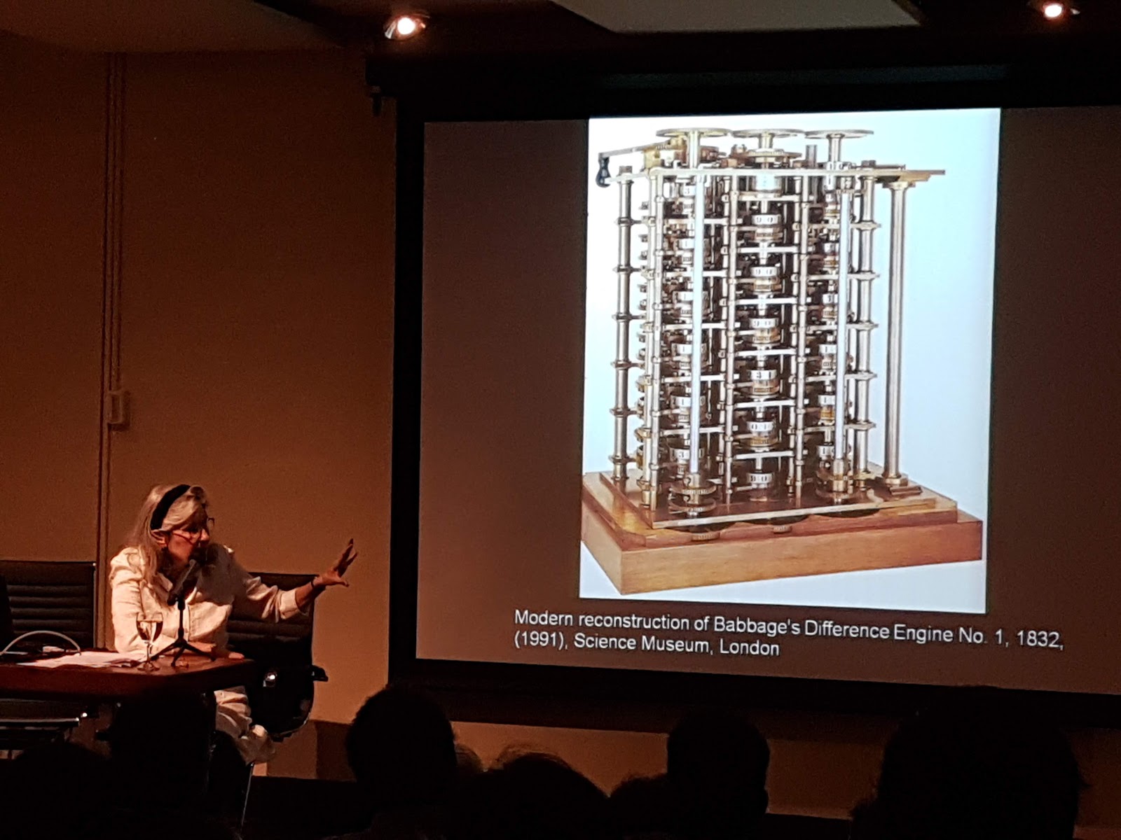 Ante un auditorio desbordante, con gente sentada hasta en el piso, Daston ofreció una elocuente conferencia sobre la historia del cálculo y la inteligencia humana: «Big Calculation and the History of Intelligence.»