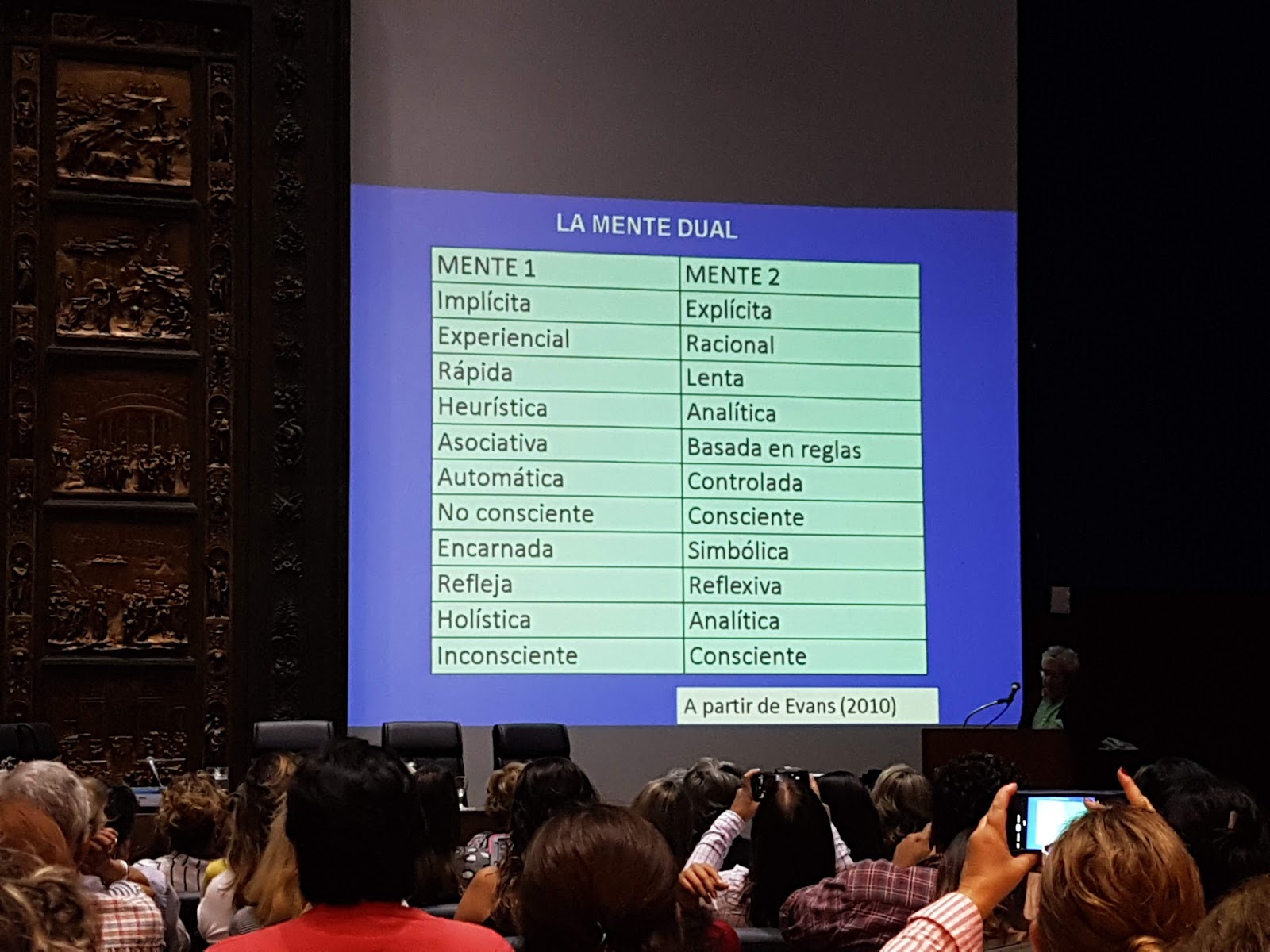 La mente «1» es intuitiva, resultado de miles de años de evolución, ofrece respuestas fáciles, rápidas, de bajo costo energético, etc. La mente «2» es racional, lenta, una prótesis cultural desarrollada durante algunas decenas de siglos. No podemos escapar a la mente 1 y sus estereotipos. Pero sí podemos ser conscientes para ser menos reactivos y más reflexivos.