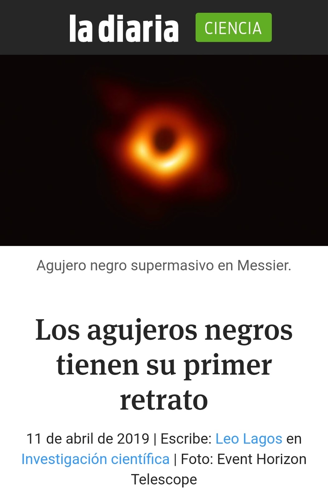 Como ya habíamos comentado hace pocos días, la colaboración internacional EHT (Telescopio del Horizonte de Sucesos), presentó la primera imagen de un Agujero Negro, en un logro extraordinario de años de trabajo.
