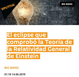 6. Entrevista «El eclipse que comprobó la Teoría de la Relatividad General de Einstein», en Big Bang, Radio Sputnik. 13 de junio.