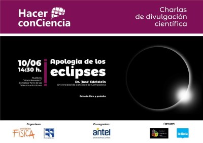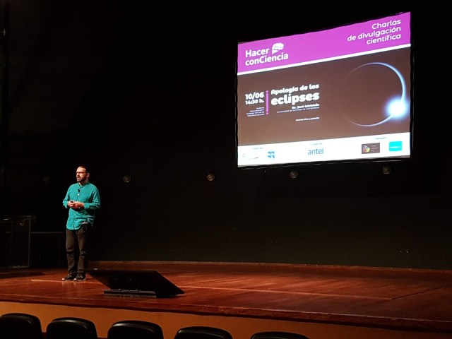 1. Conferencia «Apología de los eclipses», en el marco de las charlas de divulgación Hacer ConCiencia, en el Auditorio «Mario Benedetti» de la Torre de las Telecomunicaciones de ANTEL. 10 de junio.