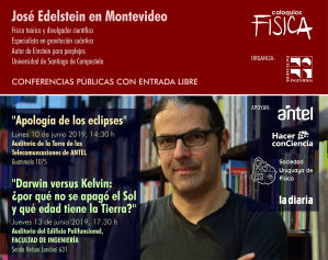 5. Conferencia «Darwin versus Kelvin: ¿por qué no se apagó el Sol y qué edad tiene la Tierra?», en el marco del Ciclo de Coloquios de Física, en el Auditorio del Edificio Polifuncional «José Luis Massera» de la Facultad de Ingeniería de la UdelaR. 13 de junio.