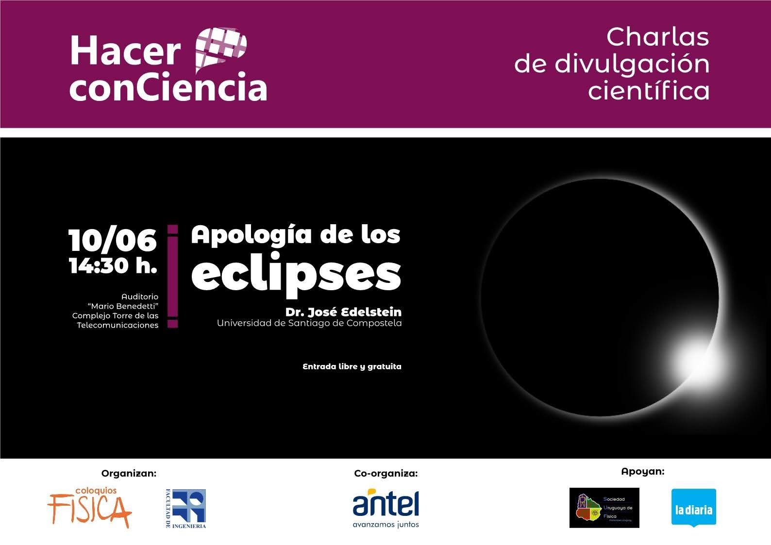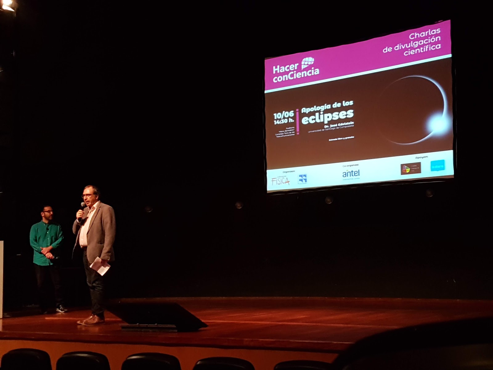 1. Conferencia «Apología de los eclipses», en el marco de las charlas de divulgación Hacer ConCiencia, en el Auditorio «Mario Benedetti» de la Torre de las Telecomunicaciones de ANTEL. 10 de junio.