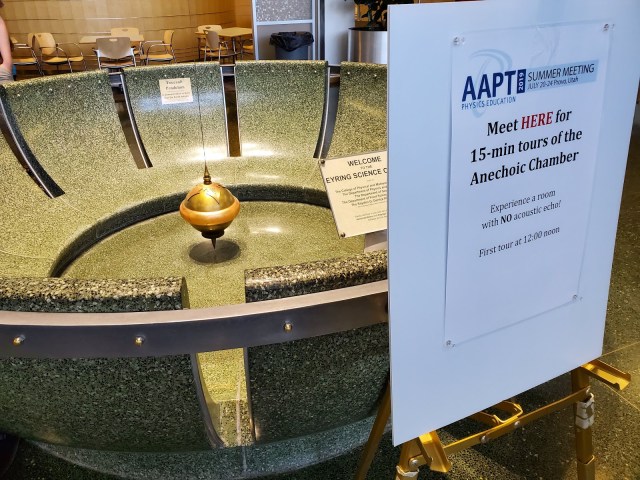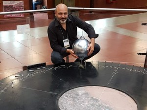 Con el péndulo de Foucault de la Facultad de Ciencias Exactas y Naturales de la Universidad de Buenos Aires, durante la Reunión de la Asociación Física Argentina 2018.