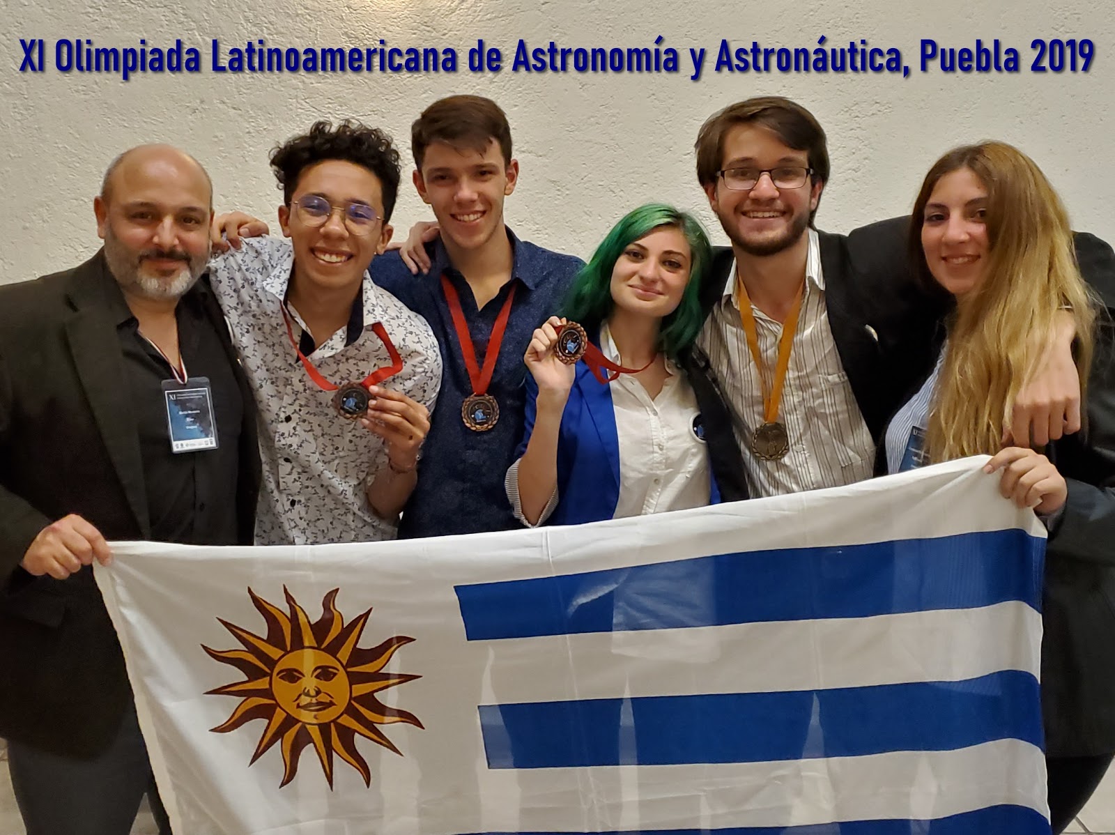 La delegación uruguaya estuvo integrada por Rodrigo Cabral (obtuvo medalla de oro), Mateo Fernández (medalla de bronce y mejor prueba teórica grupal), Milagros Segovia (medalla de bronce), Marcos Alzugaray (medalla de bronce) y Constanza Flores (mención honorífica). Estos talentosos jóvenes se ganaron el derecho de representar a Uruguay luego de recorrer un extenso y exigente camino olímpico. El ciclo que culminó en esta OLAA 2019 comenzó un año antes con la primera prueba de la XI Olimpiada Uruguaya de Astronomía 2018/2019, a la que le siguieron varias pruebas más y finalmente un curso intensivo de preparación para cubrir el extenso temario de la Olimpiada Latinoamericana.