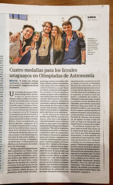 Desde su regreso a Montevideo varios medios se han hecho eco de la participación de los olímpicos en la Olimpiada Latinoamericana. Aquí algunas de las notas que se han publicado (se puede acceder a las notas haciendo click en cada uno de los medios):