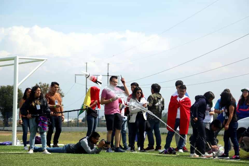 La prueba de cohetería se desarrolló en un campo deportivo, donde cada equipo tuvo dos oportunidades para lanzar lo más lejos posible su cohete de agua y aire comprimido, que durante los tres días anteriores habían estado desarrollando junto con su base de lanzamiento.