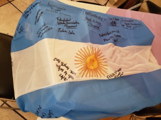 La remera de la hermana de Milagros, al lado de la bandera, dice: