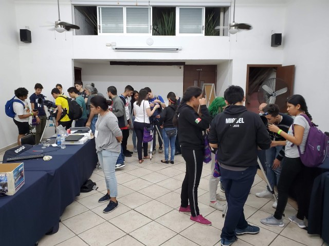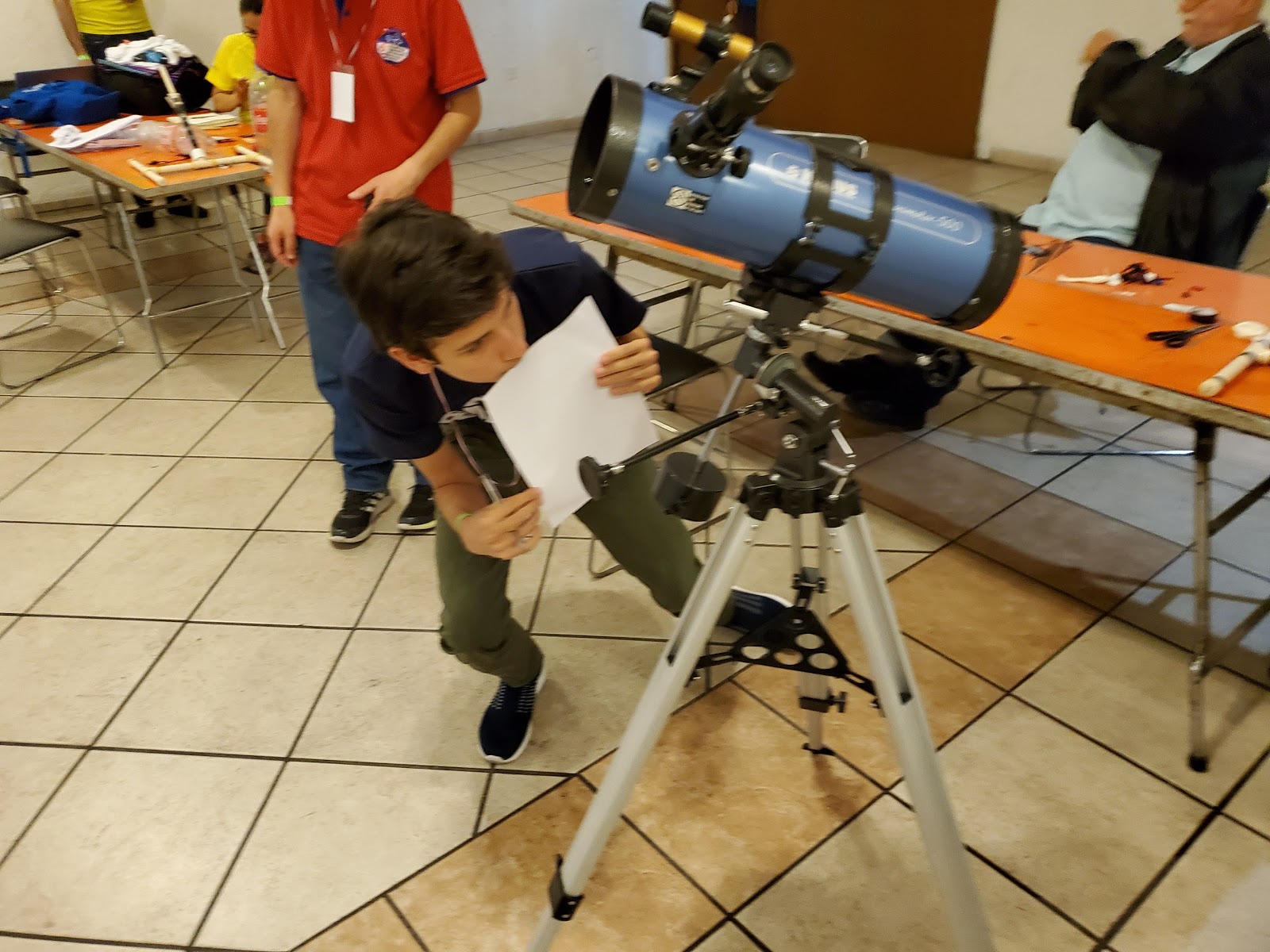 La prueba observacional debió realizarse bajo techo debido a la falta de cielo despejado. Se elaboró entonces una prueba alternativa con varias etapas: 1) Reconocimiento de objetos. 2) Terminador lunar, 3) Carta estelar, 4) Manejo de telescopio y 5) Reconocimiento de objetos en planetario. En este enlace se puede acceder a las primeras tres partes de la prueba observacional (ver parte escrita de la prueba observacional) y en el siguiente se puede acceder a las imágenes que se proyectaron para las dos primeras partes (ver imágenes proyectadas para la prueba observacional). La prueba de manejo de telescopio consistió en apuntar el telescopio a un objeto de referencia y determinar su declinación y su ángulo horario. La prueba de planetario se realizó en el INAOE, y allí los estudiantes debieron identificar cinco objetos del cielo de Puebla que se iban señalando. Estos fueron: la estrella Zubeneschamali (beta de la constelación de Libra), la estrella Altair (alfa de la constelación del Águila), la constelación de Acuario, la constelación del Cisne y la nebulosa del anillo (M57).