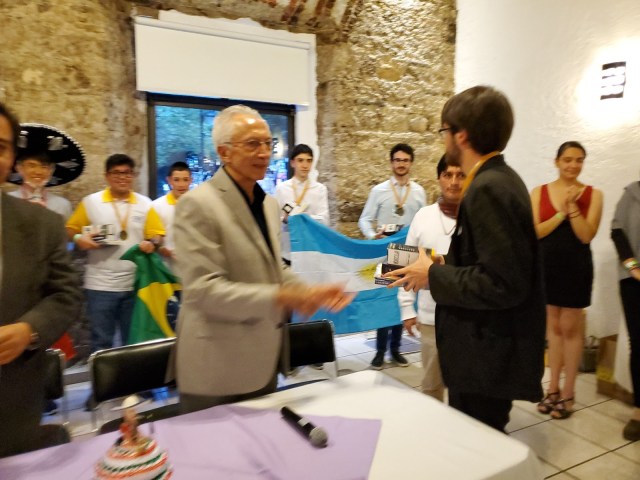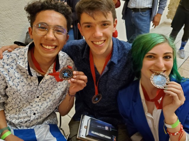 Mateo con su equipo recibiendo el premio a mejor prueba teórica grupal