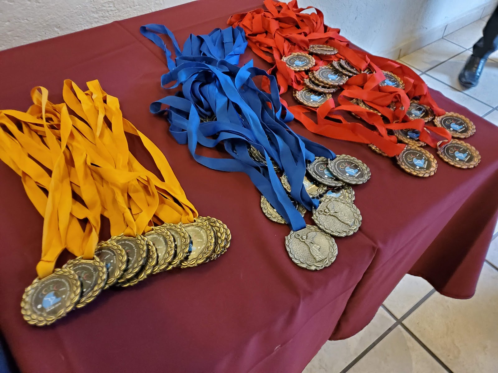 Milagros, Marcos y Mateo recibiendo medalla de bronce
