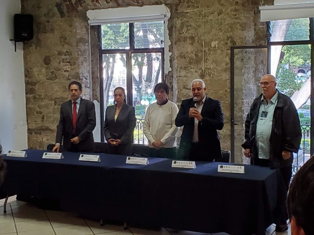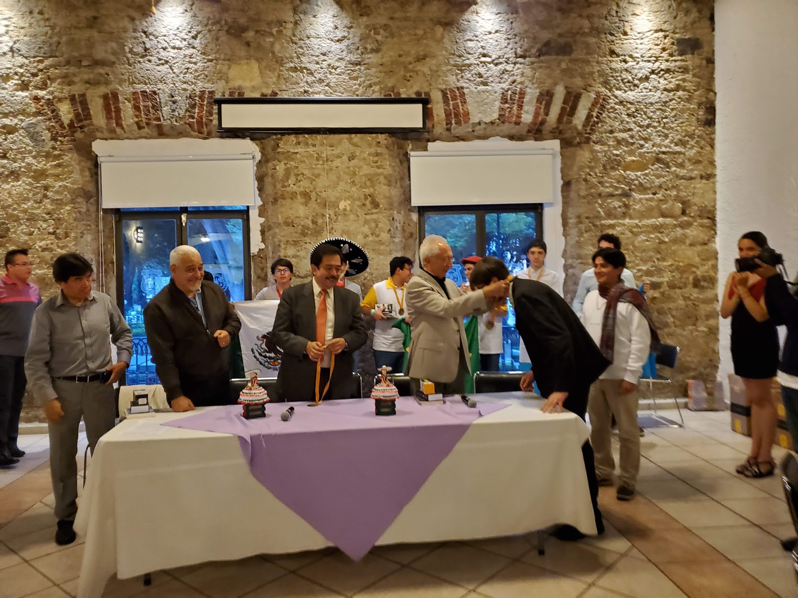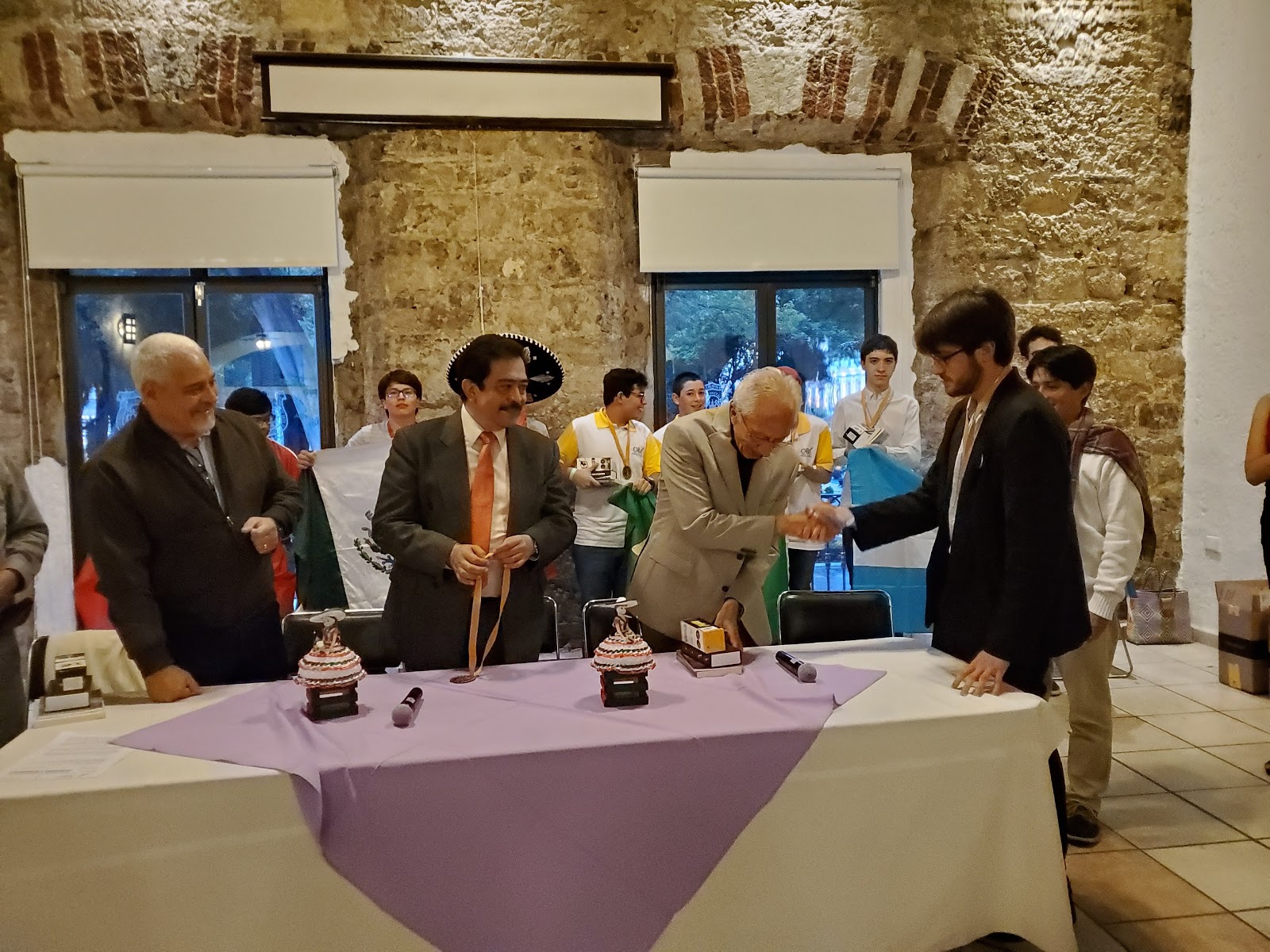 Con Daniela Reyes, Eduardo Mendoza y Eduardo Valadez del comité organizador. Atrás Oscar Angulo, delegado de México.