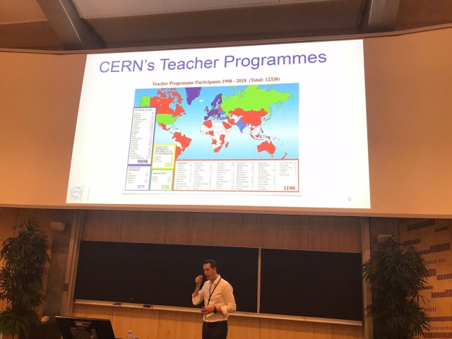El CERN, como inmensa organización científica que es, desarrolla innumerables actividades académicas, educativas y divulgativas a nivel global. Unas de esas actividades relacionados con educación son los Programas para Profesores (Teacher Programmes) que se desarrollan en diferentes momentos del año y en diferentes idiomas. Cada país miembro del CERN cuenta con su propio programa para profesores. Es el caso de España. Sin embargo los organizadores españoles han querido que su programa para profesores sea más que un programa nacional, para extenderlo a un programa para profesores de habla hispana en general. Este es un hecho notable, siendo que los países latinoamericanos no son miembros del CERN y por lo tanto no cuentan con sus propios programas para profesores, tienen, a través del programa español, la posibilidad de participar. Con este fin es que el programa español invita cada año a profesores de países latinoamericanos para sumarse a sus cursos.