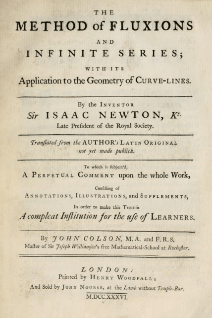 El «método de las fluxiones» al que Newton se refiere es nada menos que la base del cálculo infinitesimal. Fluxion es el término empleado por Newton para lo que hoy denominamos Derivada, es decir la tasa instantánea de cambio de una cierta cantidad o función. El «método inverso de las fluxiones» es el cálculo integral. Estos notables desarrollos intelectuales de Newton fueron publicados en su libro The method of fluxions and infinite series, terminado en 1671, pero publicado póstumamente recién en 1736.