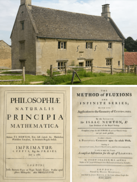 Algunas de las medidas tomadas para contener la epidemia de 1665 fueron el aislamiento y la cuarentena. La Universidad de Cambridge cerró sus puertas, incluido el Trinity College al que pertenecía Newton, lo que obligó a un joven Isaac, de 22 años, a ingresar en cuarentena, regresando a su casa materna, Woolsthorpe Manor, en el condado de Lincolnshire, Inglaterra.