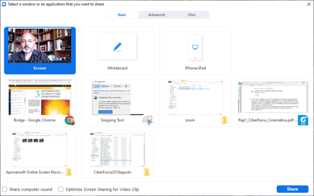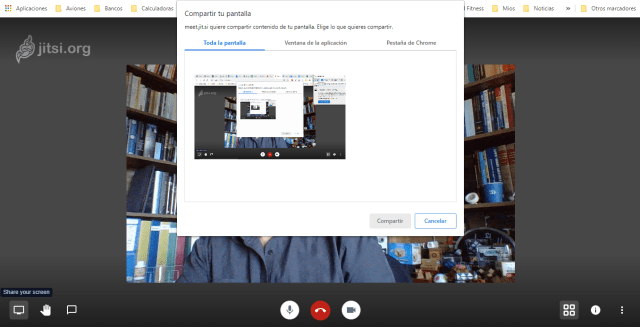 Incluye la posibilidad de compartir la pantalla para mostrar presentaciones, o diferentes aplicaciones como simulaciones o cualquier otro recurso.
