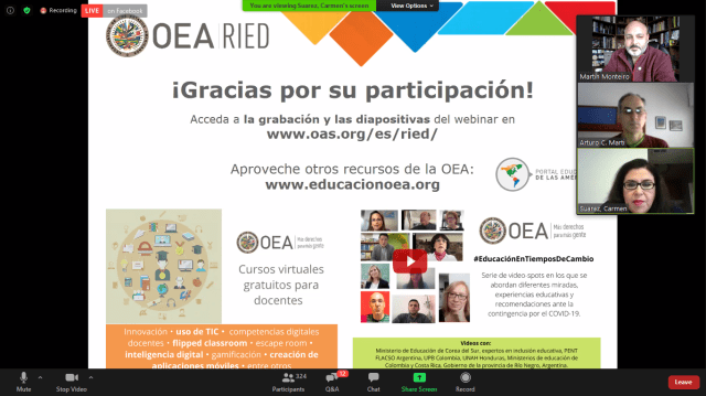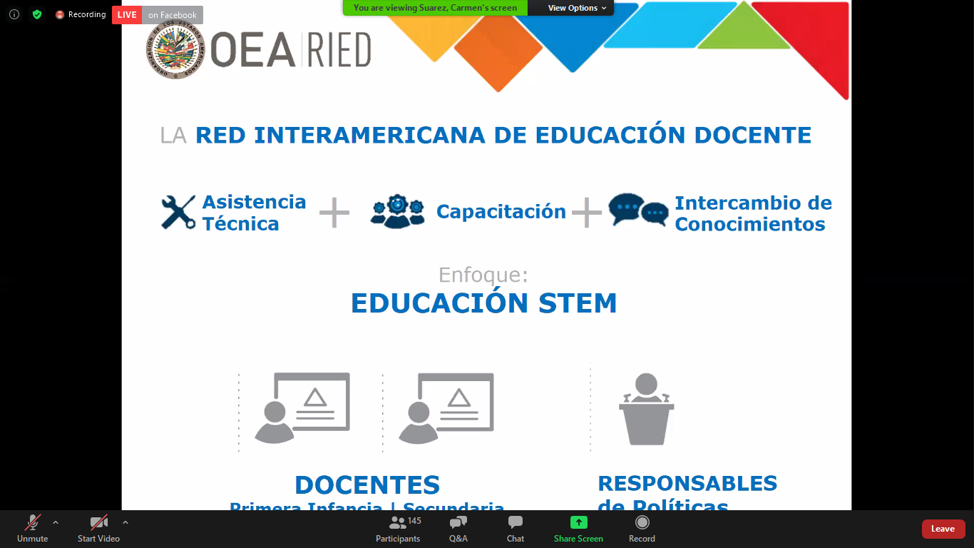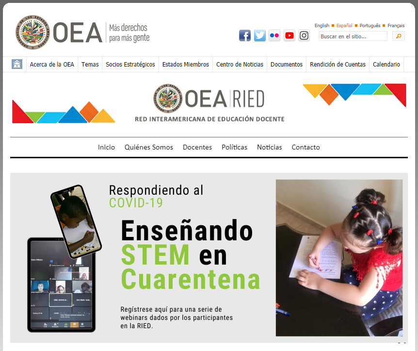 Webinar para la Red Interamericana de Educación Docente, de la Organización de Estados Americanos, dentro del ciclo «Respondiendo al COVID-19. Enseñando STEM en Cuarentena.»