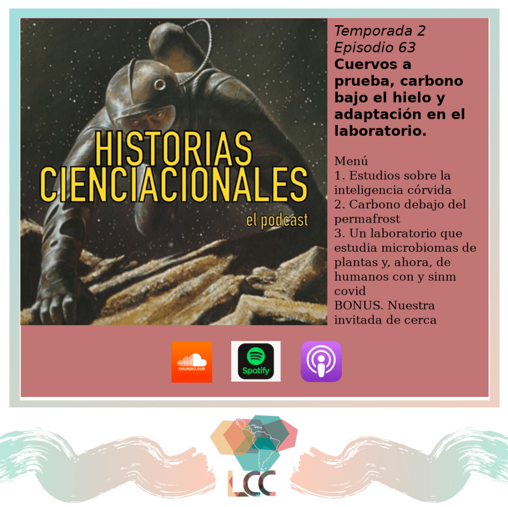 En este episodio, nos esperanzamos pensando en la inteligencia córvida (y cuestionamos los métodos para medirla), nos preocupamos por ese carbono que va apareciendo debajo de los hielos del norte y, al enterarnos del año que tuvo el laboratorio de nuestra invitada Angélica Cibrián, reflexionamos sobre los beneficios de vivir y trabajar en colectividad para adaptarse de cara a las crisis.