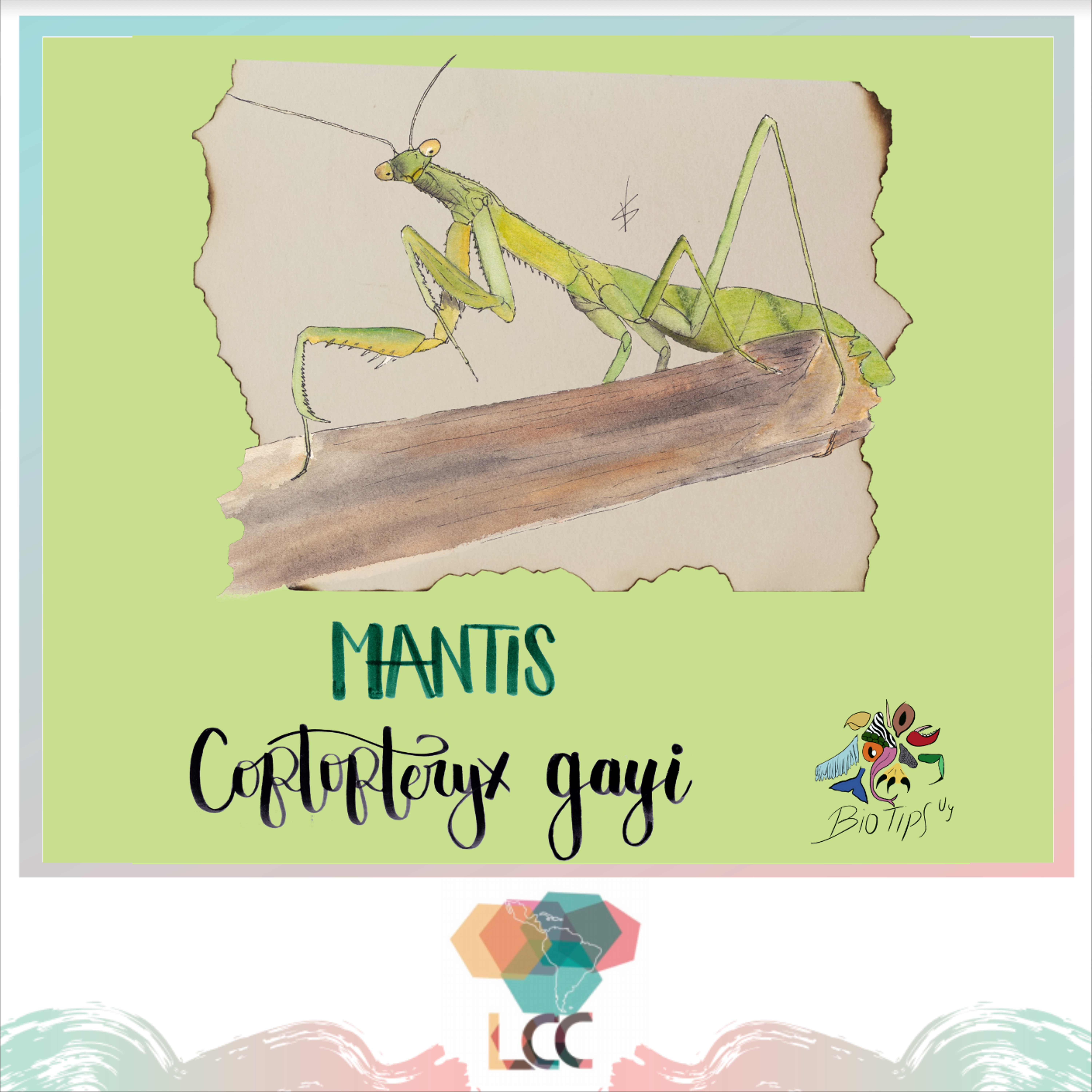 La Mantis (Coptopteryx gayi) es una especie que pertenece al grupo de los artrópodos. Mide aproximadamente 5 a 7 cm. Se encuentra presente en todo el Uruguay y parte de América del Sur. Su estado de conservación se cataloga como sin registro (SR), es decir que todavía no se han realizado investigaciones respecto a su estado de conservación, pero se la podría ver como una especie sin peligro de extinción. Se encuentra asociada a la vegetación de los pastizales, también se han observado en la vegetación dunar de la playa. Si quieres saber más sobre esta especie visita nuestra publicación.