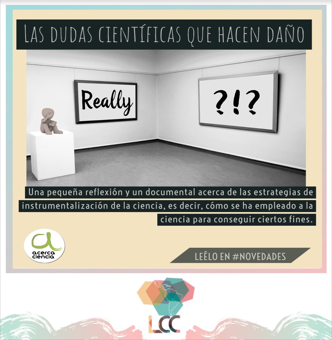 […] En esta entrada de AcercaCiencia, Cecilia Di Prinzio nos deja una pequeña reflexión y un documental acerca de las estrategias de instrumentalización de la ciencia, es decir, cómo se ha empleado a la ciencia para conseguir ciertos fines: https://redlcc.org/2021/05/28/las-dudas-cientificas-que-hacen-dano/ […]