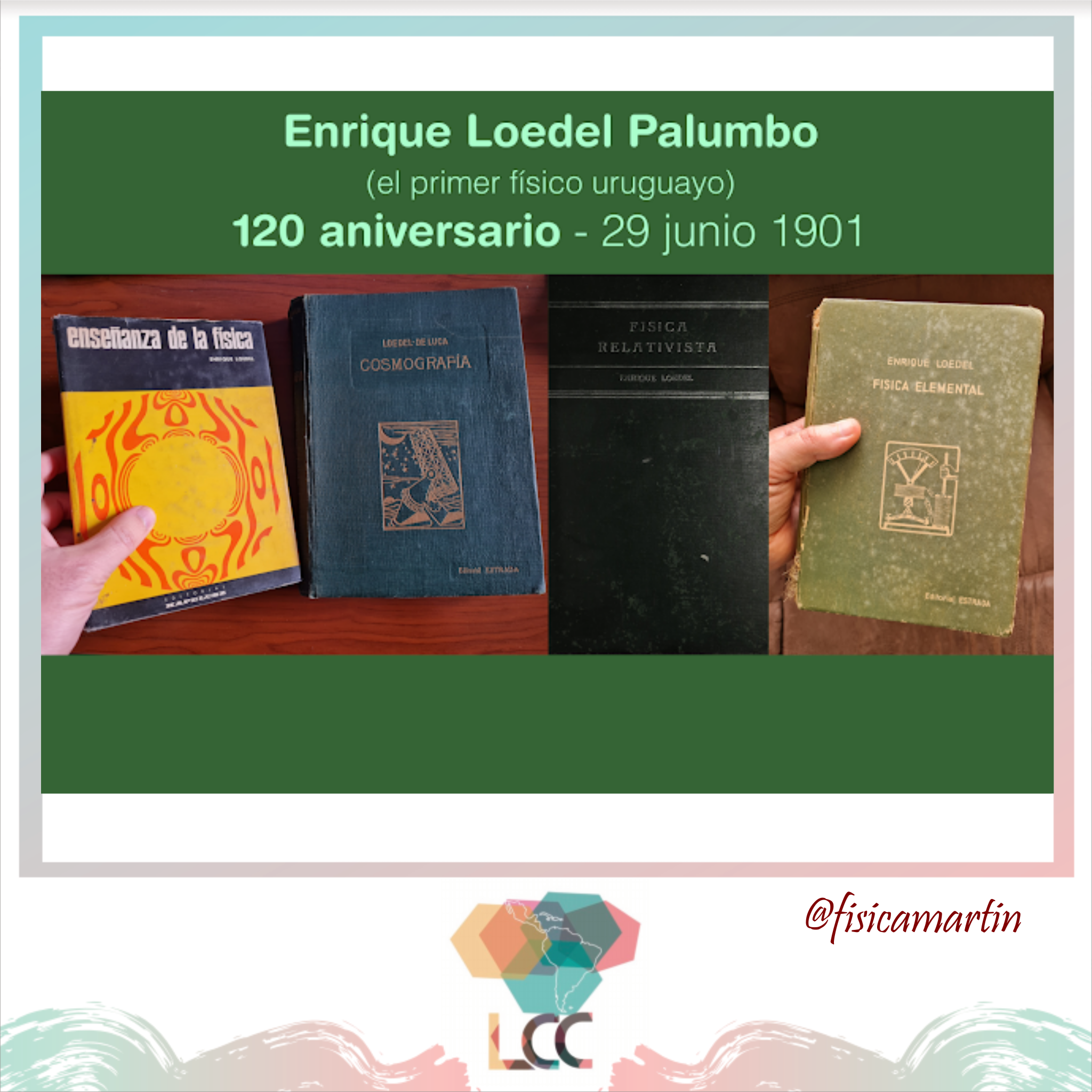 El 29 de junio de 1901 nacía en Montevideo, Enrique Loedel Palumbo, quien se convertiría en el primer físico uruguayo tras graduarse en la Universidad de La Plata y obtener su doctorado en 1925. Aquí comparto los cuatro libros más importantes de su producción académica, que desde hace un tiempo nos hemos tomado el trabajo de digitalizar, por el placer de divulgar su obra.