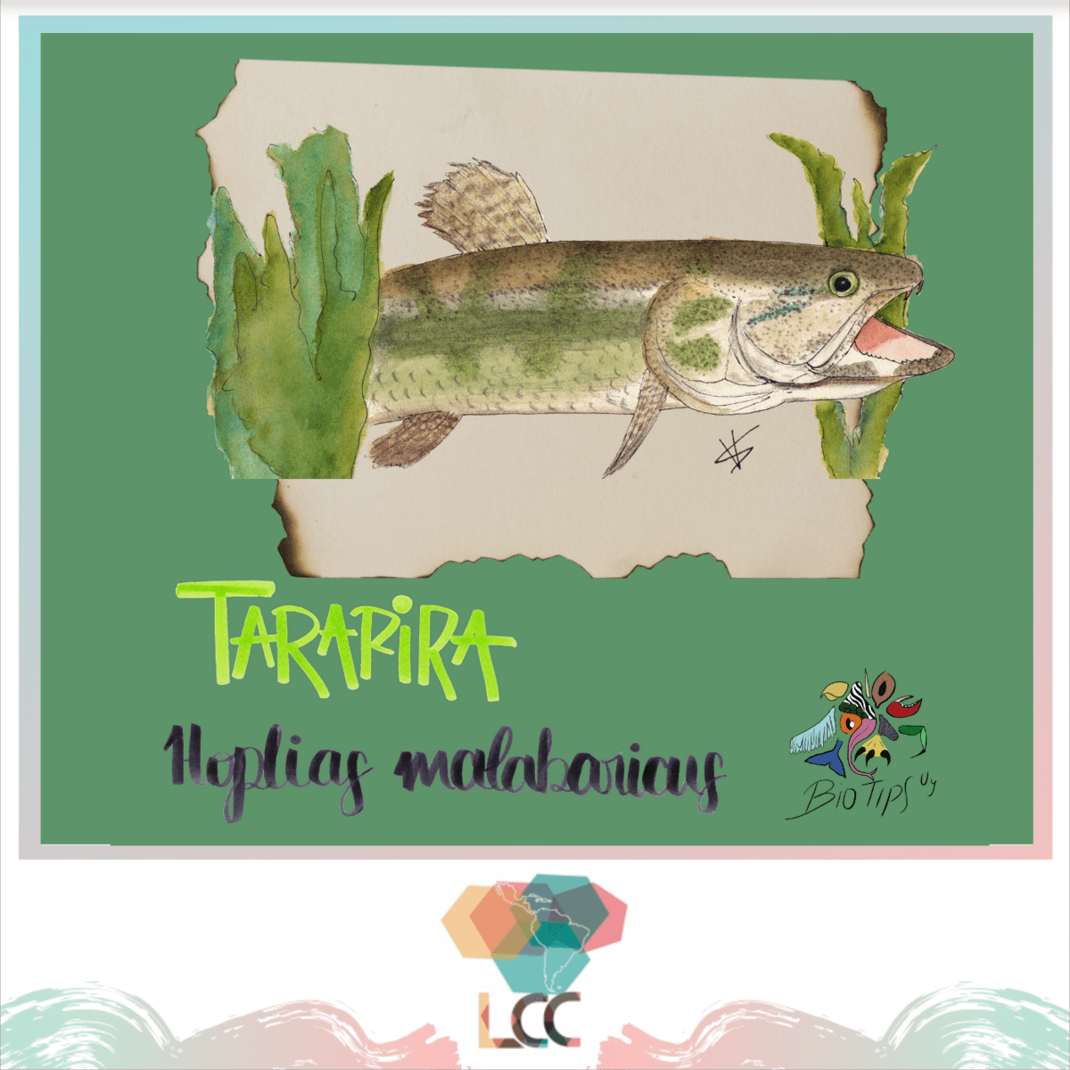Publicado en: BioTipsUy Leelo competo en: https://www.instagram.com/p/CRpfHG6pQNv/ La Tararira (Hoplias malabaricus) es una especie que pertenece al grupo de los peces. Su largo total es 50 cm y pesa hasta 5 kg. Se encuentra presente en todo el Uruguay y América del Sur. Su estado de conservación se cataloga como (DI) datos insuficientes, es decir no […]